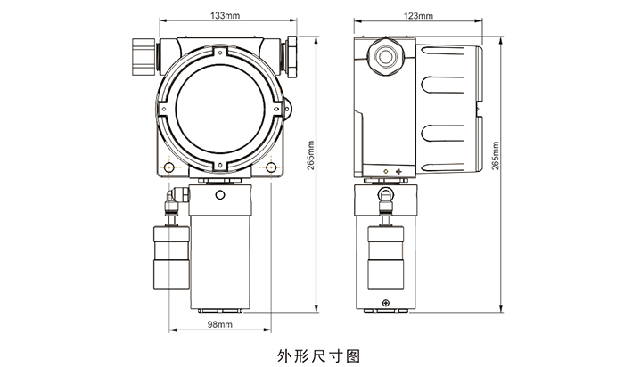 | 外形尺寸 | (133x265x123)mm(WxHxD) |